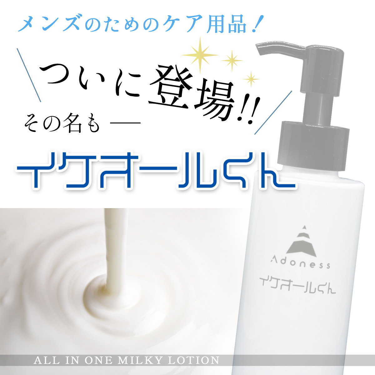 【オールインワン乳液】 ついに登場!メンズのためのケア用品! その名も「イケオールくん」