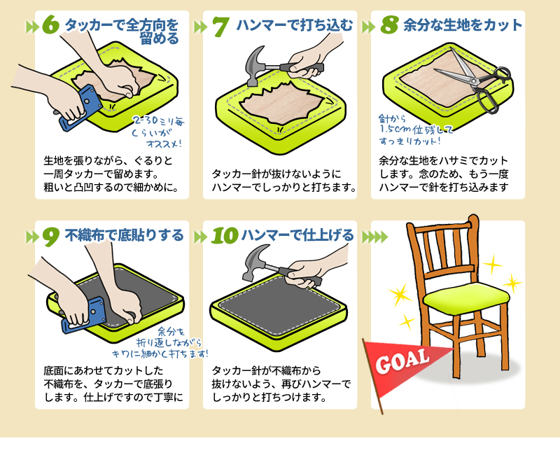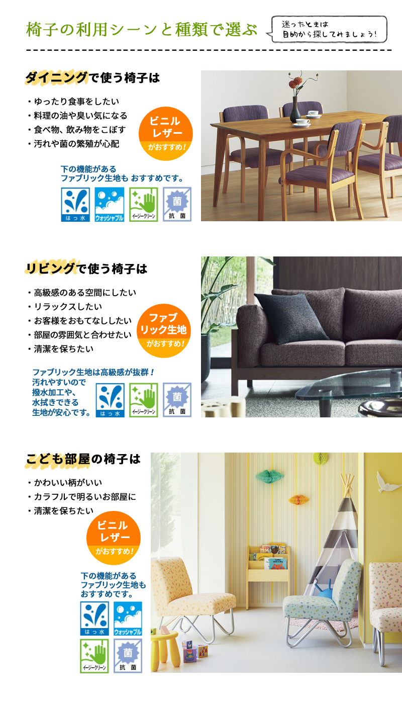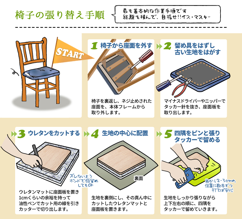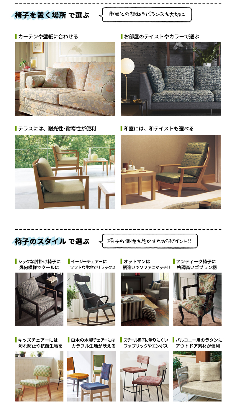 【椅子生地】と【張替え】の説明ページ
